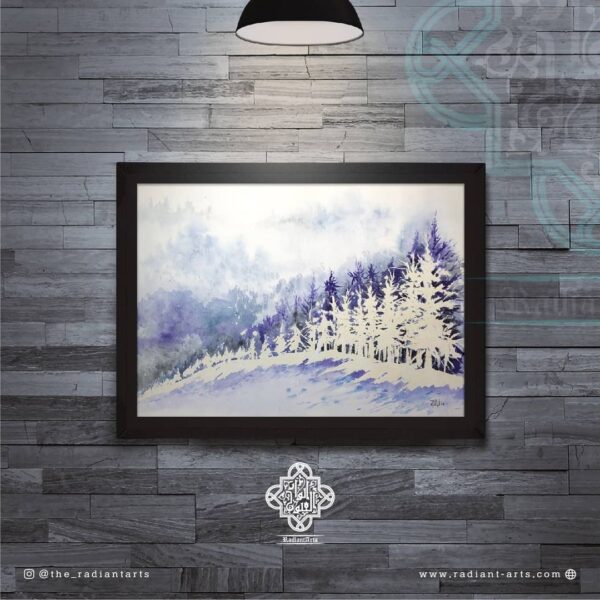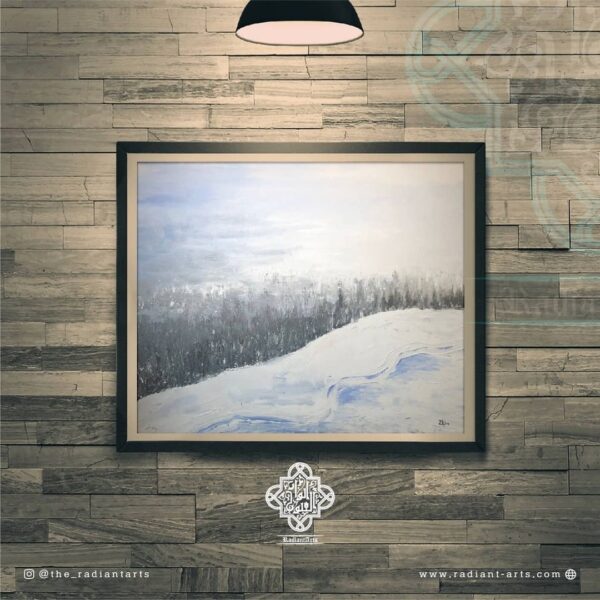 āFirdaus bar ru-yi ZamÄ«nā depict the majesty of the snow clad mountains of Gulmarg. Verdant fir trees, dusted with white powder glistening with the different hues of the mountain sky, stand out upon the canvas. Together, with the rising mountain peaks and the seemingly infinite firmament beyond, the vistas truly feel like a paradise on earth. .