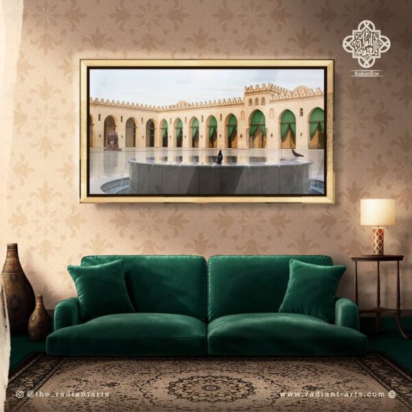 The foreground of this picture captures one of two ablution pools within the sehn of al-Jami al-Anwar. The one seen in the photo is situated in the western corner of the masjid.
